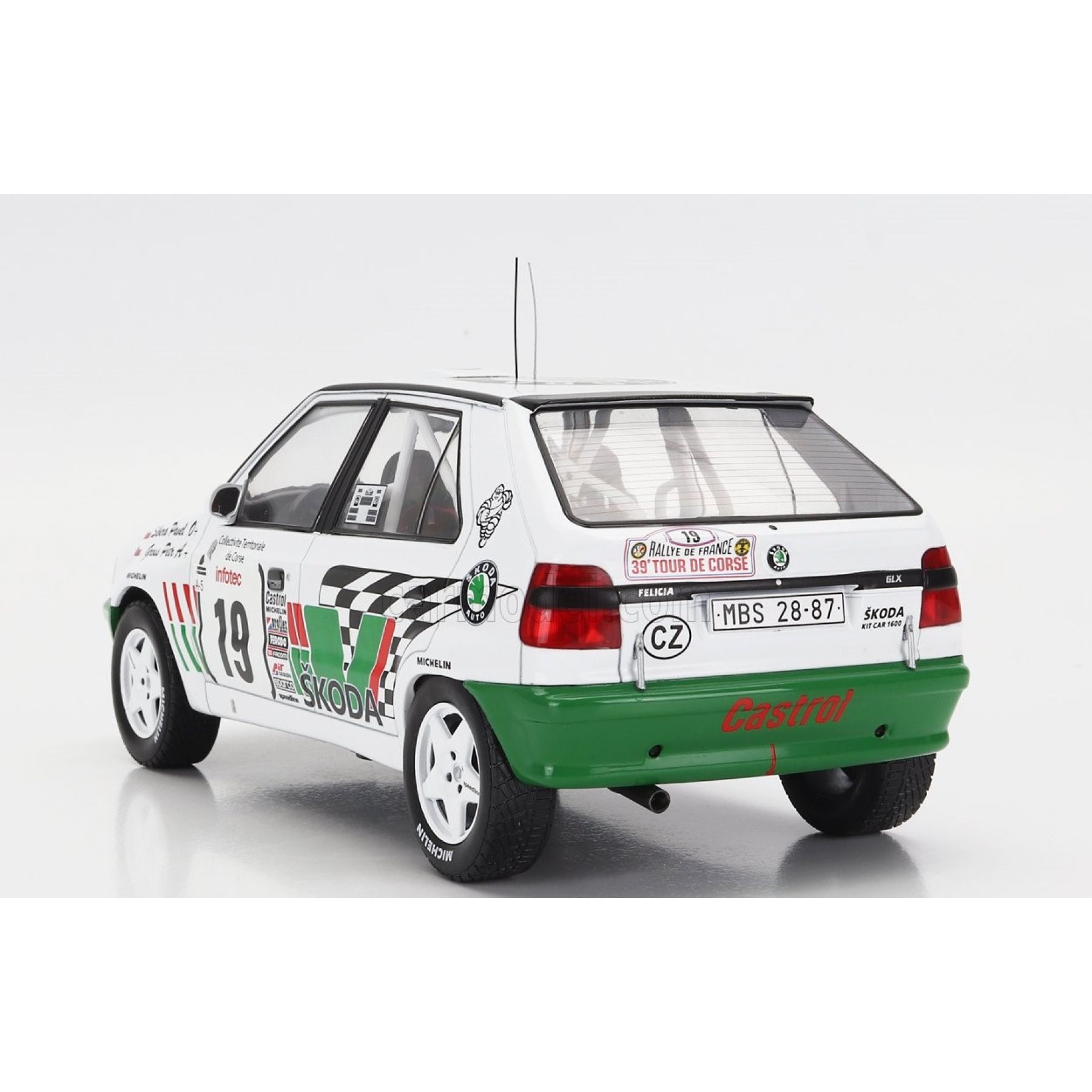 IXO Models tarafından üretilen 1/18 ölçekli Skoda Felicia Kit Car #19, 1995 Tour de Corse (Korsika Rallisi) yarışında Pavel Sibera ve Petr Gross ikilisi tarafından kullanılan efsanevi ralli aracının detaylı bir replikasıdır