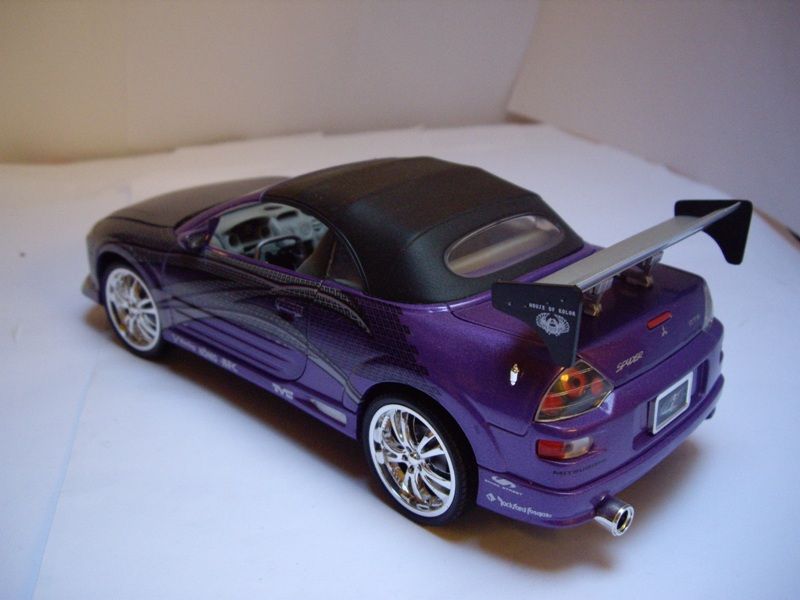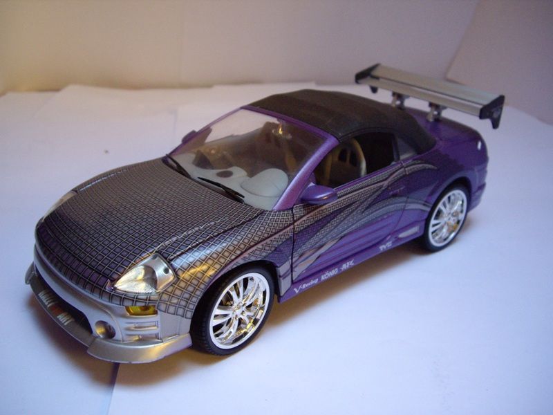 1/18 Ölçek (Ertl) Mitsubishi Roman’s Eclipse Spyder 2001 – Fast & Furious II (2003) – 2 Fast 2 Furious Bu maket, 2 Fast 2 Furious (2003) filminde Roman Pearce (Tyrese Gibson) tarafından kullanılan ikonik Mitsubishi Eclipse Spyder 2001 modelinin birebir replikasıdır. 1/18 ölçekli olarak üretilmiş olup, Ertl firmasının detay odaklı koleksiyon serisine aittir. Model; filmdeki turuncu gövde rengi, özel grafikler, body kit, jantlar ve iç tasarım detaylarıyla dikkat çeker. Açılabilir kaput, kapılar ve bagaj gibi fonksiyonel parçalar sayesinde sergileme değeri oldukça yüksektir. İç mekânda koltuklar, direksiyon, gösterge paneli ve modifiye detayları özenle işlenmiştir. Fast & Furious serisi hayranları ve 1/18 ölçek die-cast koleksiyoncuları için vazgeçilmez, nadir ve prestijli bir parçadır. Hem vitrinlik hem de koleksiyon değeri yüksek bir modeldir. İstersen daha kısa vitrin etiketi, satış ilanı açıklaması ya da daha teknik (
